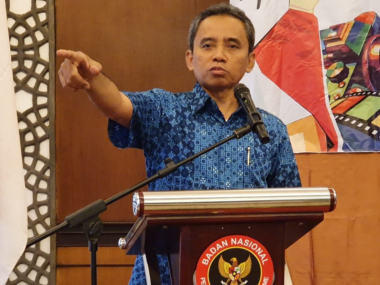 Direktur Pencegahan BNPT, Ir Hamli ME memberikan sambutan sekaligus membuka acara lomba video pendek dan diskusi film "Satu Indonesia" di Hotel Syariah, Solo, Kamis (19/9). Foto:ist