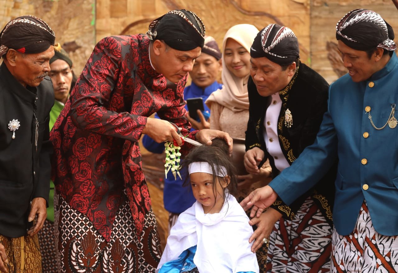 Saat prosesi pemotongan berlangsung, Ganjar juga ikut memotong rambut peserta ruwatan. Dengan hati-hati dan bimbingan sesepuh, Ganjar memangkas rambut gimbal dan meletakkannya di sebuah kendi. Usai memotong, Ganjar memberikan hadiah yang menjadi syarat permintaan si anak. Bahkan, ketika ada anak yang meminta kalung, Ganjar memakaikan sendiri kalung itu kepada si anak.