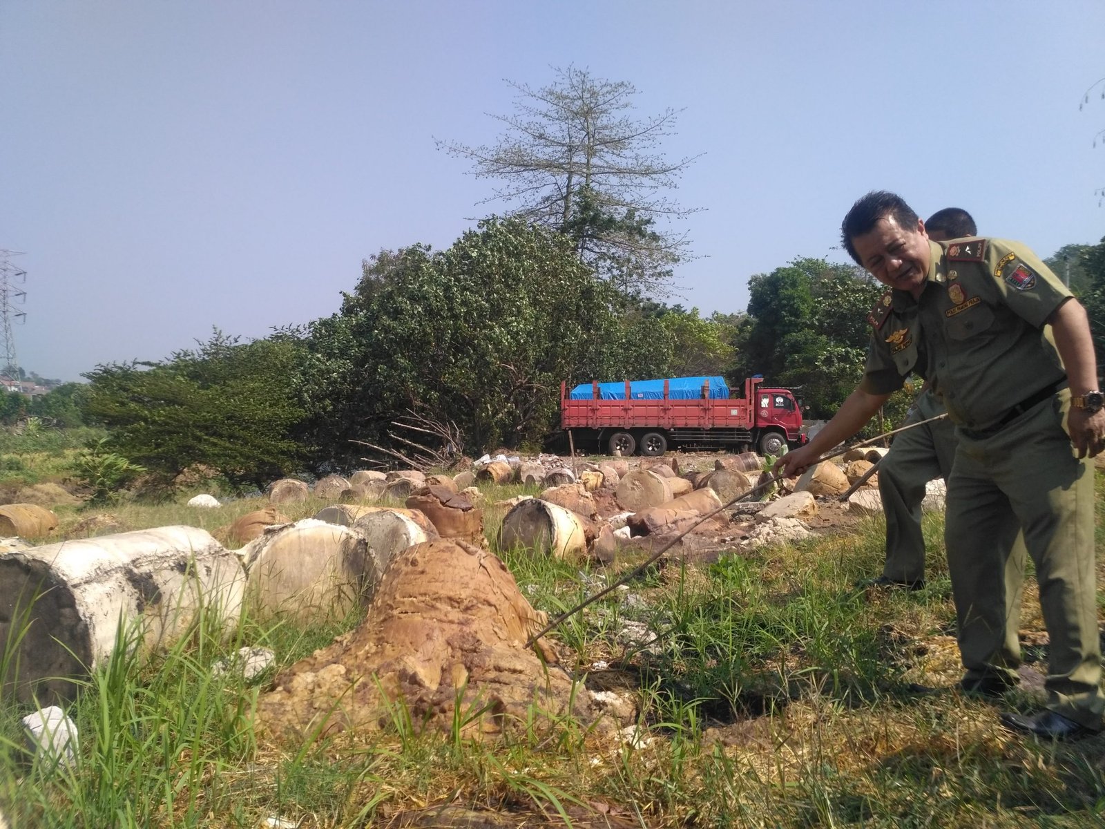 Dari pantauan Jatengdaily.com bersama Satpol di lokasi, terdapat ratusan limbah dalam bentuk cetak padat drum yang berserakan, tepatnya di Bantaran Sungai Simongan yang menghubungan ke Sungai Banjir Kanal Barat (BKB) Semarang.