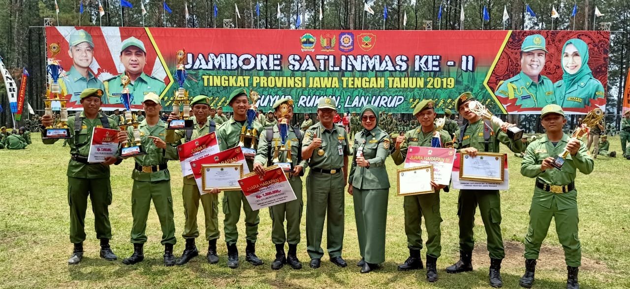 Kepala Satpol PP dan Linmas Jateng Budiyanto berfoto bersama dengan para anggota satlinmas dalam acara Jambore Satlinmas di Bumi Perkemahan Linggoasri, Kabupaten Pekalongan. Foto: dok