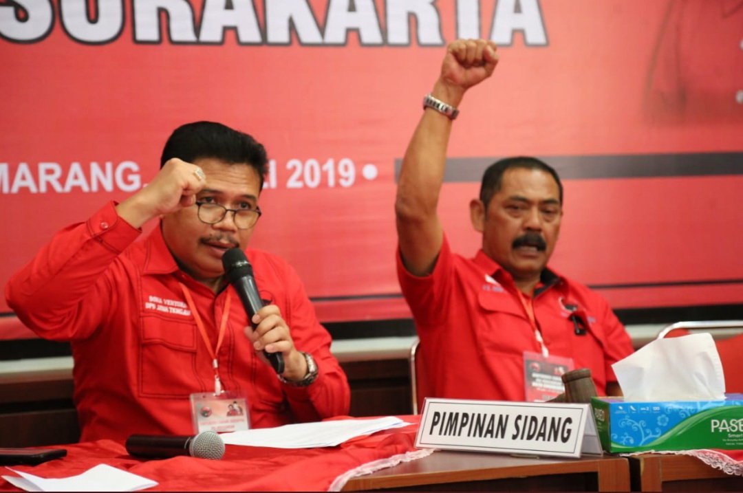 SEMARANG (Jatengdaily.com) – FX Hadi Rudyatmo kembali memimpin DPC PDI Perjuangan Kota Solo untuk kelima kalinya. Meskipun sebelumnya sempat menyatakan menolak untuk menjadi Ketua DPC PDIP Solo karena sudah menjabat 20 tahun, namun hasil Konfercab serentak di Panti Marhaen Semarang, tetap memberikan amanah tersebut ke Rudy untuk periode 2019-2024.