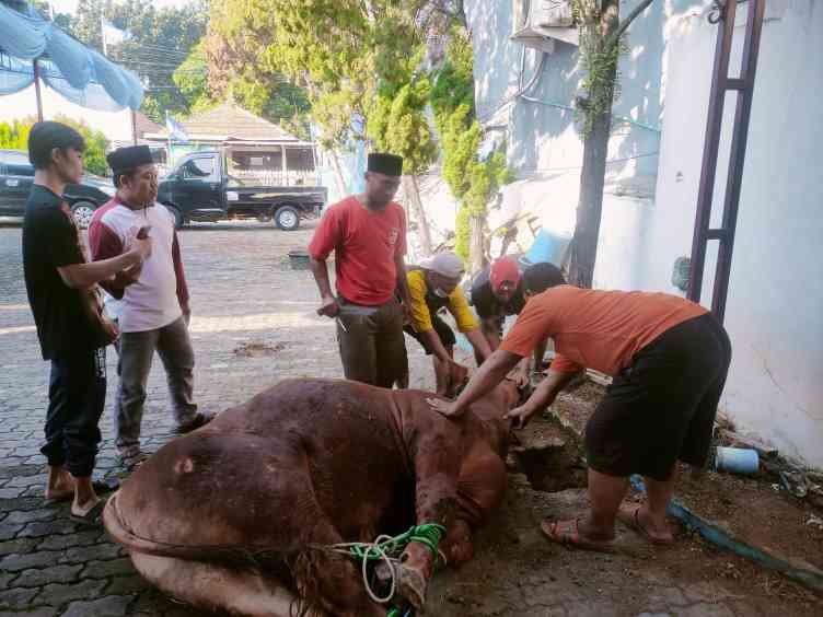Dewan Pimpinan Daerah (DPD) Partai Demokrat Jateng menyembelih hewan kurban sebanyak seekor sapi. Foto:dok