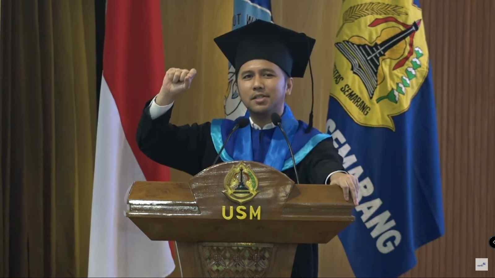 Dia adalah Emil Elestianto Dardak B.Bus, MSc, PhD. Emil adalah wakil Gubernur Jawa Timur yang ikut diwisuda bersama ratusan lulusan USM pada Upacara Wisuda Ke-68 Universitas Semarang pada 29 Mei 2024 di Aditorium Ir Widjatmoko, Jl Soekarno-Hatta, Tlogosari, Semarang.