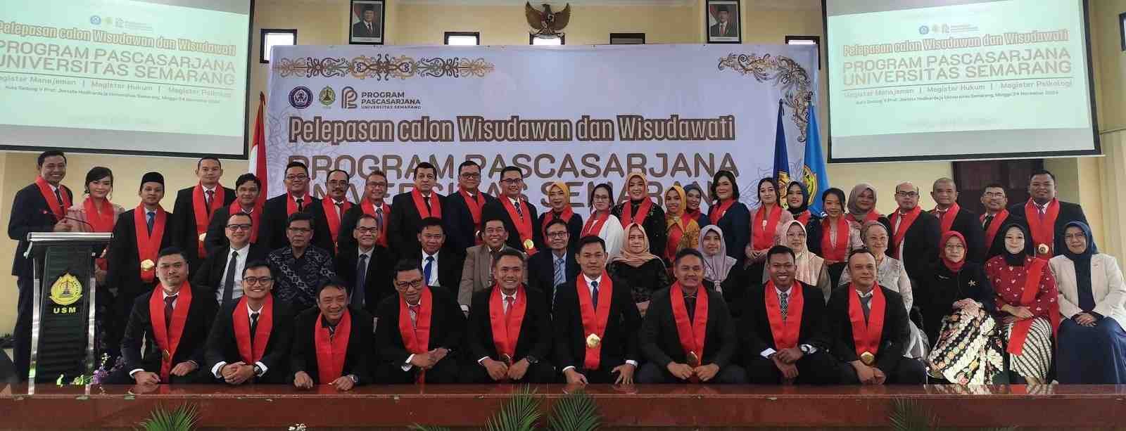 SEMARANG (Jatengdaily.com) – Program Studi Pascasarjana Universitas Semarang (USM) melepas 87 lulusan terdiri atas prodi Magister Manajemen, Magister Hukum dan Magister Psikologi di Gedung Q lantai 6 Aula Prof Ir Joetata Hadihardaja pada 24 November 2024.