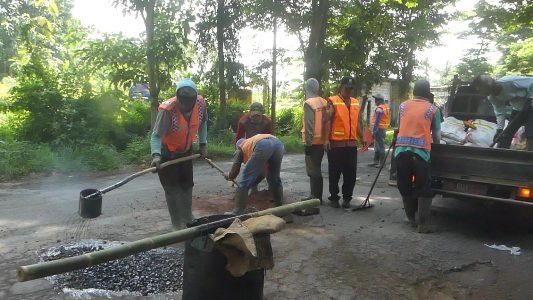 Perbaikan jalan di Temanggung, untuk persiapan mudik. Foto: humas