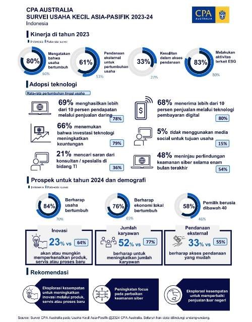 Survei Usaha Kecil Asia-Pasifik tahunan mencatat bahwa momentum pertumbuhan yang kuat ini akan terus berlanjut di tahun 2024, mencerminkan kepercayaan terhadap bisnis dan perekonomian di Indonesia.