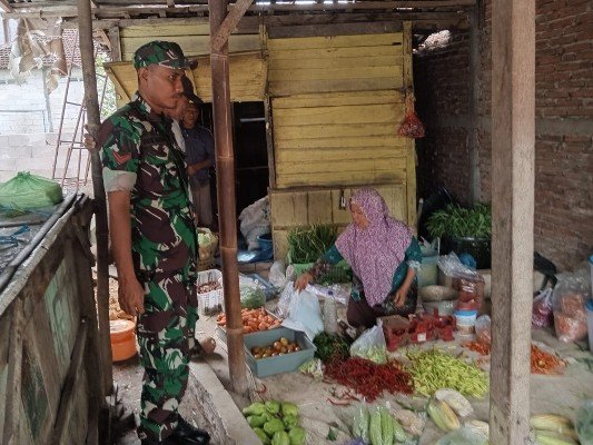 Puasa Hari Pertama, Babinsa Cek Harga Sembako di Pasar Tradisional