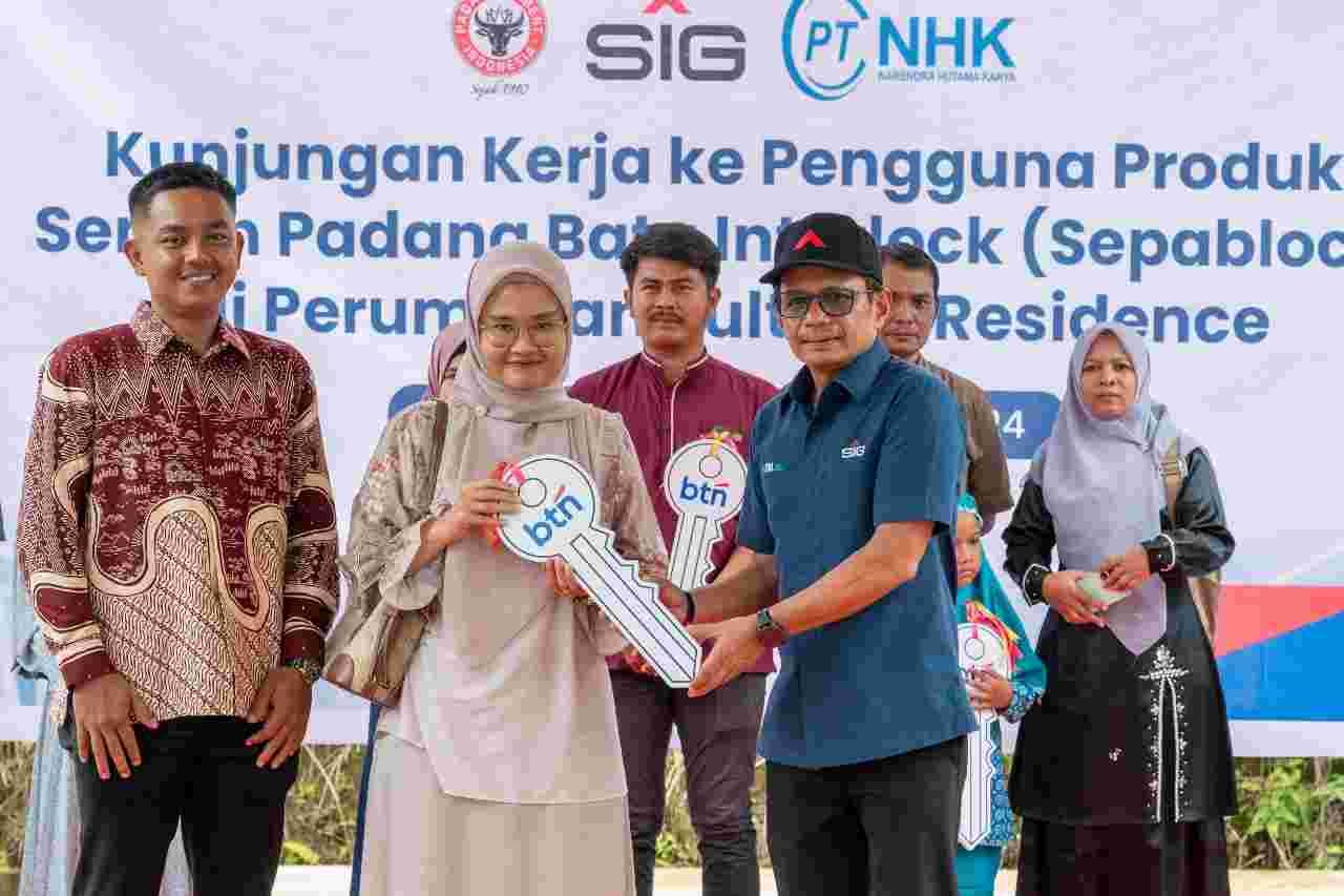 Dalam acara kunjungan kerja tersebut, BTN bersama SIG dan anak usahanya, PT Semen Padang, turut menyerahkan secara langsung kunci rumah kepada konsumen di Sulthan Residence, Kabupaten Pasaman Barat, Sumatra Barat, pada Jumat (11/10/2024). Selain kedua Direktur Utama perusahaan, turut hadir juga perwakilan jajaran Direksi BTN, SIG, PT Semen Padang dan PT Narendra Hutama Karya. Selain seremonial penyerahan kunci rumah kepada konsumen dan melihat langsung rumah yang dibangun dengan precise interlock brick, manajemen BTN juga diajak berkunjung ke workshop PT Semen Padang untuk meninjau proses produksi precise interlock brick.