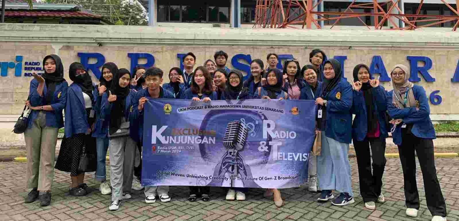 SEMARANG (Jatengdaily.com) – Sebanyak 23 mahasiswa dari Unit Kegiatan Mahasiswa Podcast dan Radio Mahasiswa Universitas Semarang (UKM Promise USM) melakukan kunjungan ke Radio USM Jaya dan RRI Semarang dengan tema ”Digital Waves : Unleashing Creativity For The Future Of Gen-Z Broadcasting” pada 8 Maret 2024.