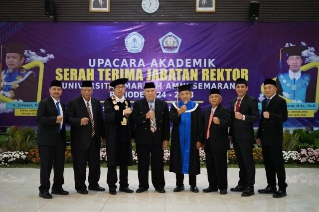 SEMARANG (Jatengdaily.com)- Ketua Yayasan Bina Kemaritiman Indonesia Drs Agus Aji Samekto melantik Prof Ir Johannes Hutabarat MSc PhD sebagai Rektor Universitas Maritim AMNI (UNIMAR AMNI) untuk masa jabatan 2024-2028, Kamis (29/2/2024), di Kampus UNIMAR AMNI, Jalan Soekarno Hatta Semarang.