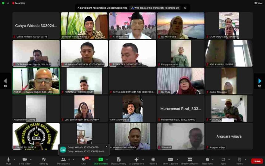 SEMARANG (Jatengdaily.com) – Persatuan Wartawan Indonesia Jawa Tengah (PWI Jateng) bersama Fakultas Hukum Universitas Islam Sultan Agung (FH Unissula) Semarang menyelenggarakan Sekolah Jurnalistik Angkatan XXV secara daring pada Kamis 4 Desember 2025.