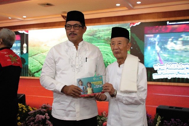 SEMARANG (Jatengdaily.com) – Badan Amil Zakat Nasional (Baznas) bekerja sama dengan Majelis Ulama Indonesia (MUI) Provinsi Jawa Tengah meluncurkan buku ‘’Penanganan Stunting Ditinjau dari Berbagai Aspek’’. Peluncuran ditandai penyerahan Buku oleh Ketua Baznas Jateng KH Ahmad Darodji kepada Pj Gubernur Jateng Nana Sudjana di sela-sela Istighotsah dan Doa Bersama malam Tahun Baru 2025 di Gradhika Bhakti Pradja, Jalan Pahlawan Semarang.