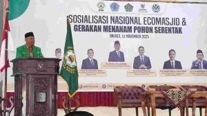 Ratusan peserta dari berbagai elemen berkumpul dalam Sosialisasi Nasional EcoMasjid dan Gerakan Menanam Pohon, sebuah gerakan ekologis yang menyatukan spiritualitas dan kepedulian lingkungan.