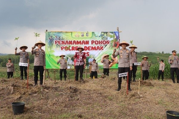 DEMAK (Jatengdaily.com) – Kepolisian Resor (Polres) Demak kembali menunjukkan komitmennya dalam menjaga kelestarian lingkungan dengan menggelar kegiatan penanaman pohon di lahan milik Perhutani yang berada di Desa Wonosekar, Kecamatan Karangawen, Kabupaten Demak.
