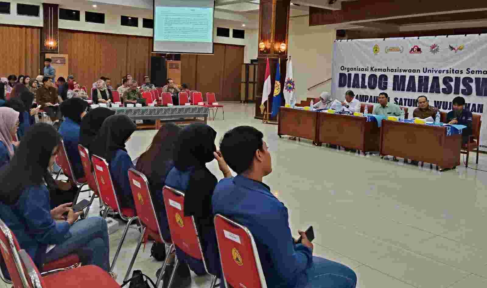Dialog berlangsung interaktif dengan berbagai pertanyaan dan masukan dari mahasiswa, terutama terkait sarana dan prasarana kampus. Beberapa peserta mengeluhkan kondisi ruangan Unit Kegiatan Mahasiswa (UKM) yang bocor saat musim hujan, serta akses Wifi dan fasilitas laboratorium yang dinilai masih belum maksimal.