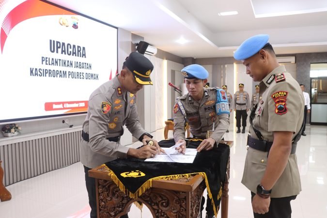 DEMAK (Jatengdaily.com) – Polres Demak menggelar upacara serah terima jabatan Kepala Seksi Profesi dan Pengamanan (Kasi Propam) di Aula Wicaksana Laghawa, Kamis (4/12/2025). Dalam upacara tersebut, Iptu Bambang Susilo resmi dikukuhkan sebagai Kasi Propam Polres Demak setelah sebelumnya melaksanakan tugas sebagai Pelaksana Tugas (Plt) sekira dua bulan.