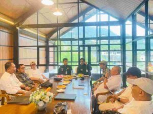 Ketua PWI Jateng Setiawan Hendra Kelana bersama Panitia HPN 2026 Tingkat Provinsi Jateng saat audiensi dengan Bupati Tegal H.Ischak Maulana Rohman dan wakil bupati, Ahmad Kholid, di kawasam wisata Guci, Kamis 18 desember 2025. Foto:dok