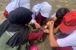 Sejak pagi, anak-anak terlihat bersemangat saat masing-masing kelompok menerima sebuah akuarium mini. Wadah kecil itu menjadi media bagi mereka untuk merangkai ekosistem mini yang terdiri dari tanah, bebatuan, tanaman kecil, hingga hewan-hewan mungil yang berhasil mereka temukan di sekitar sekolah.