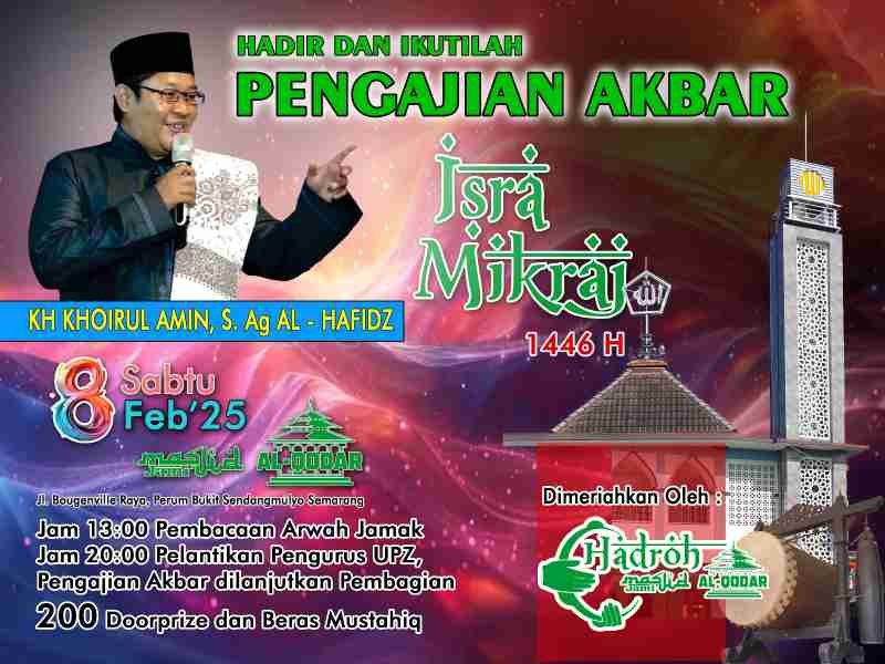 SEMARANG (Jatengdaily.com) – Masjid Jami’ Alqodar Sendangmulyo akan mengadakan Pengajian Akbar dalam rangka Isra Mikraj 1446 H pada 8 Februari 2025.