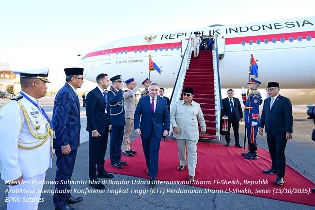 Selama berada di Mesir, Presiden Prabowo dijadwalkan menghadiri KTT Perdamaian Sharm El-Sheikh, yang menjadi forum diplomatik internasional untuk membahas upaya penghentian perang di Gaza dan langkah perdamaian berkelanjutan di kawasan Timur Tengah.