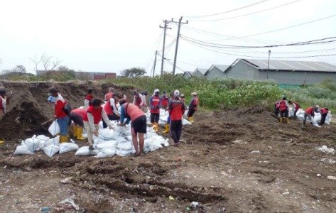 Proses pengerjaan sandbag, lanjutnya, dilakukan dengan pengisian tanah atau pasir ke dalam karung, kemudian diangkut menggunakan dump truck ke lokasi-lokasi terdampak.