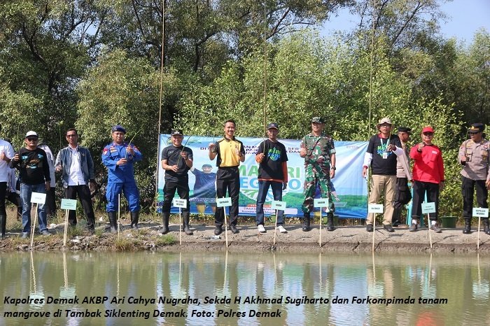 DEMAK (Jatengdaily.com)– Kepolisian Resor (Polres) Demak, Jawa Tengah, bersama Pemerintah Kabupaten (Pemkab) Demak aktif melaksanakan program “Mageri Segoro Provinsi Jawa Tengah” dengan menanam 6.000 bibit mangrove di sepanjang pesisir pantai Kabupaten Demak, Rabu (15/10/2025).