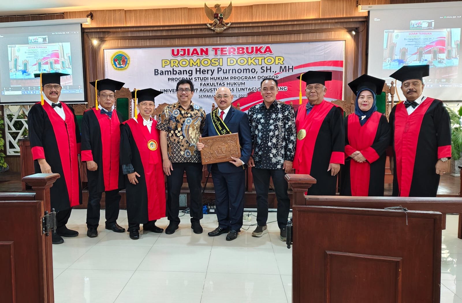 Penetapan kelulusan sebagai doktor tersebut telah disampaikan oleh Ketua dewan sidang Prof. Dr. Edy Lisdiyono, SH. MHum, setelah mendapat kesepakatan dari dewan penguji yang lain, yakni Dr. Agus Wibowo, SH. MSi, Dr. Krismiyarsi, SH. MHum, dan Dr. Markus Suryo Utomo, SH. MSi, serta Dr. Rizkan Julyadi, SH. MH, selaku penguji eksternal.