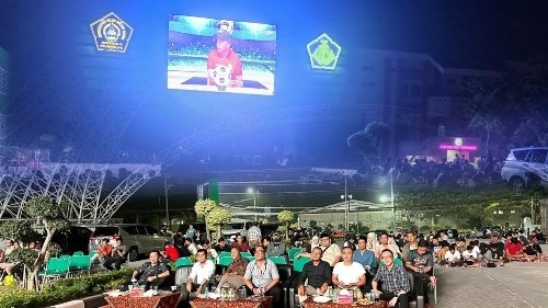 SEMARANG (Jatengdaily.com)- Dosen, karyawan,  mahasiswa Unissula dan pengurus Yayasan Badan Wakaf Sultan Agung (YBWSA) mengadakan nonton bareng (nobar) pertandingan sepak bola antara Timnas Indonesia melawan Timnas China. Mereka menonton lewat videotron yang berada di samping gedung Rektorat pada Kamis malam Jum’at (5/6/2025).