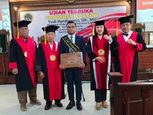 Atas capaian luar biasa tersebut, Yudi Hardiyanto dinyatakan lulus sebagai Doktor Ilmu Hukum ke-152 PSHPD Fakultas Hukum UNTAG Semarang dengan predikat Cumlaude, meraih IPK 3,89, dan menyelesaikan studi doktoralnya dalam waktu 2 tahun, 6 bulan, 29 hari — sebuah prestasi yang menegaskan komitmen dan ketekunannya dalam mengabdi pada dunia akademik dan reformasi hukum di Indonesia. St