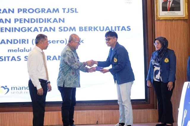 SEMARANG (Jatengdaily.com) – PT Bank Mandiri Persero Tbk menyalurkan Program Tanggung Jawab Sosial dan Lingkungan TJSL berupa bantuan pendidikan bagi mahasiswa USM, pada 30 Maret 2026 di Auditorium Ir Widjatmoko USM Jl Soekarno-Hatta, Tlogosari, Pedurungan, Semarang.