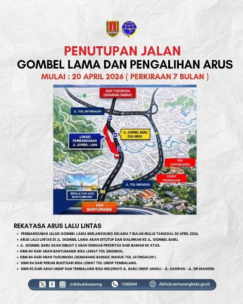 SEMARANG (Jatengdaily.com)– Pemerintah Kota (Pemkot Semarang) akan memberlakukan rekayasa lalu lintas di kawasan Jalan Gombel mulai Senin (20/4/2026) pukul 09.00 WIB hari ini. Kebijakan ini dilakukan dengan menutup Jalan Gombel Lama dan mengalihkan arus ke Jalan Gombel Baru.