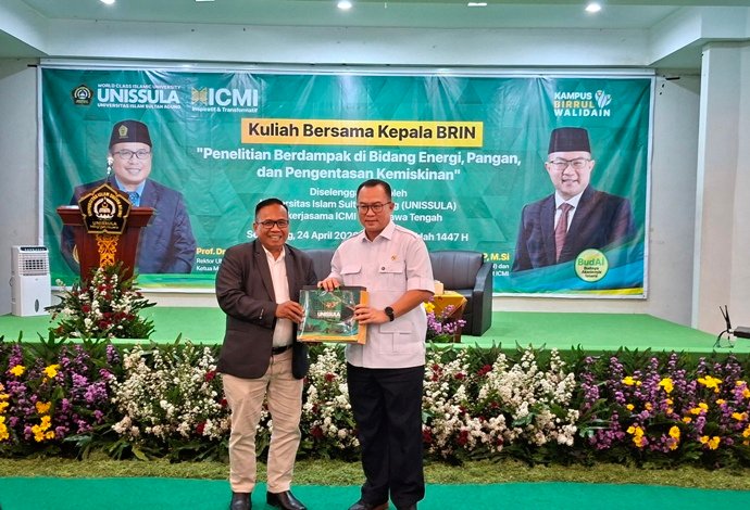 SEMARANG (Jatengdaily.com) –Universitas Islam Sultan Agung (Unissula) bekerjasama dengan Ikatan Cendekiawan Muslim Indonesia (ICMI) Orwil Jateng menggelar kuliah umum menghadirkan Kepala Badan Riset dan Inovasi Nasional (BRIN), Jumat (24/4/2026). Kegiatan ini mengusung tema “Penelitian Berdampak di Bidang Energi, Pangan dan Pengentasan Kemiskinan”.
