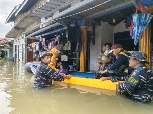 Lanal Semarang bantu warga yang terdampak banjir di Pati. Foto: dok