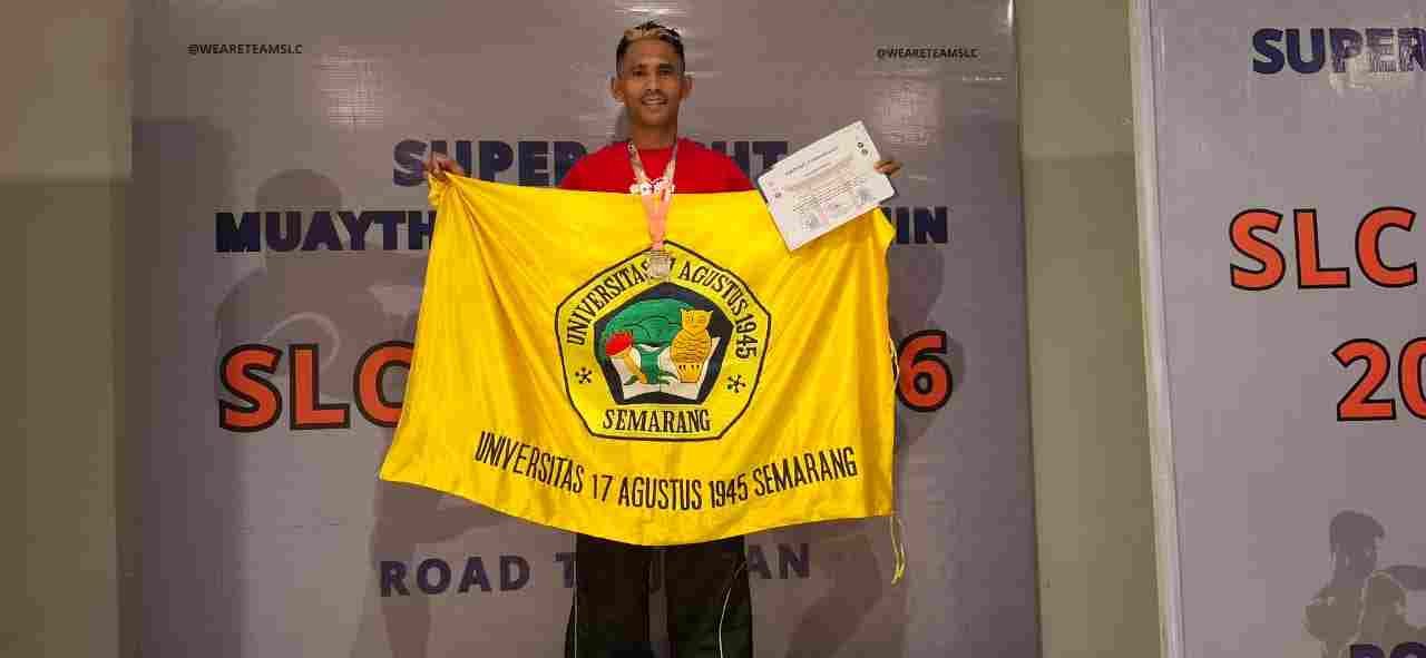 Hendrikus Rahayaan, mahasiswa Fakultas Hukum Universitas 17 Agustus 1945 (Untag) Semarang, kembali menegaskan kualitasnya sebagai petarung tangguh dengan meraih medali emas dalam ajang Super Fight Muaythai–K1–Kyokushin SLC Cup.
