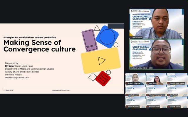 Kegiatan ini sebagai sebuah inisiatif pengajaran kolaboratif internasional yang dirancang untuk menghadirkan pengalaman belajar global di lingkungan kampus Undip. Kegiatan ini bertajuk “Strategies for Multiplatform Production and Transmedia Storytelling.”