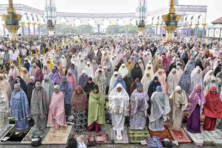 Ribuan umat Muslim dari berbagai penjuru Kota Semarang dan sekitarnya memadati kawasan Masjid Agung Jawa Tengah. Foto:dok/Chandra AN