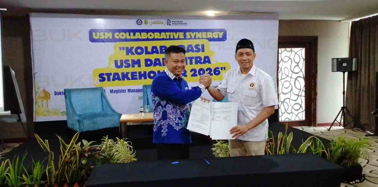 Penandatanganan PKS dilakukan oleh Ketua PWI Jateng Setiawan Hendra Kelana bersama Direktur Program Pascasarjana USM Dr Muhammad Junaidi SHI MH dibarengkan dalam acara gathering dan buka puasa bersama bertajuk USM Collaborative Synergy ”Kolaborasi USM dan Mitra Stakeholder 2026”.