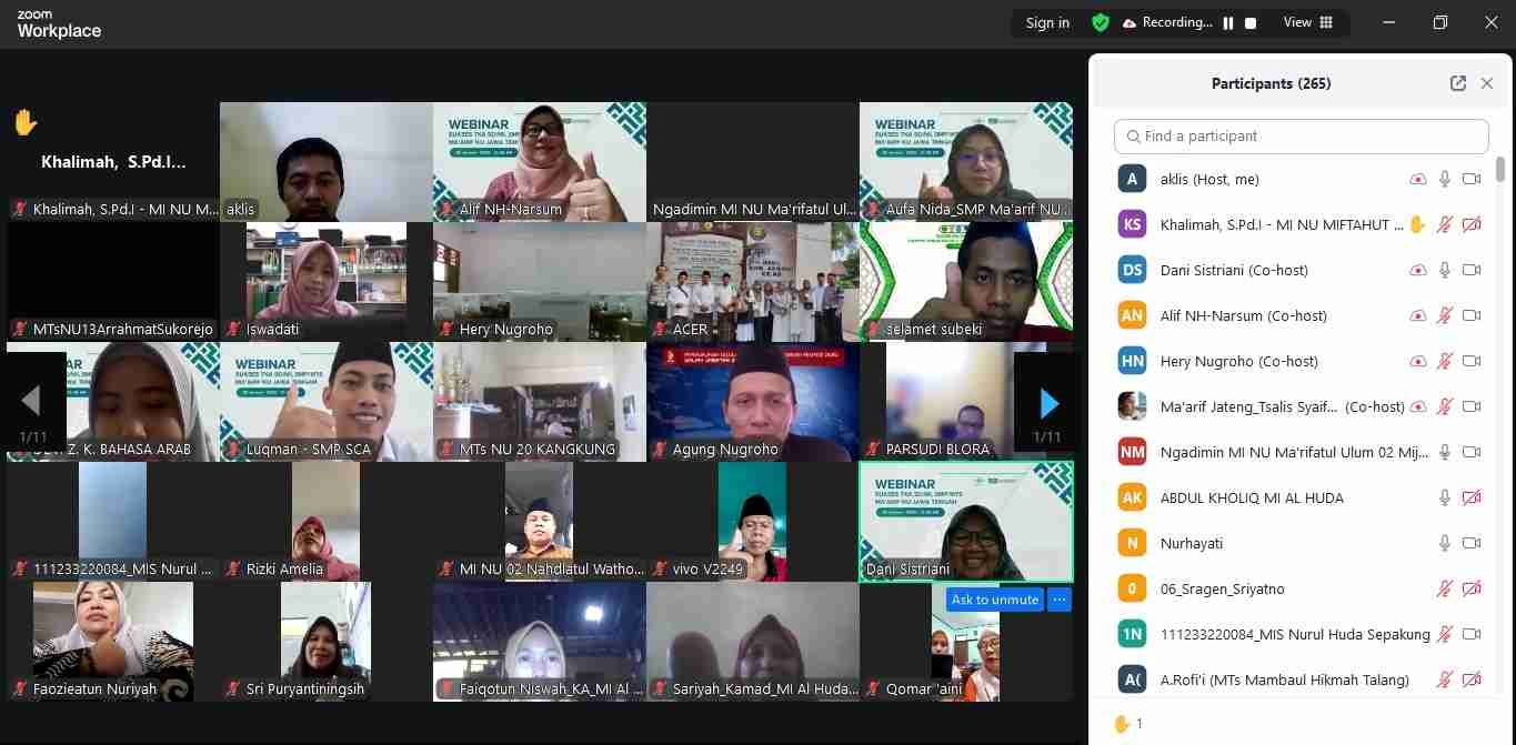 Webinar ini diikuti oleh 265 peserta yang terdiri atas guru SD/MI dan SMP/MTs dari berbagai daerah di bawah naungan LP Ma’arif NU se-Jawa Tengah. Kegiatan tersebut menjadi ruang strategis untuk menyamakan persepsi sekaligus memperkuat kesiapan mental dan manajerial sekolah menghadapi agenda evaluasi nasional tahun ajaran 2026.