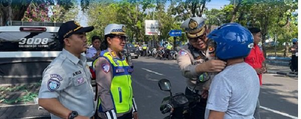 Operasi Patuh Candi 2025, Polrestabes Semarang Bagikan Helm untuk Pengendara Yang Tertib